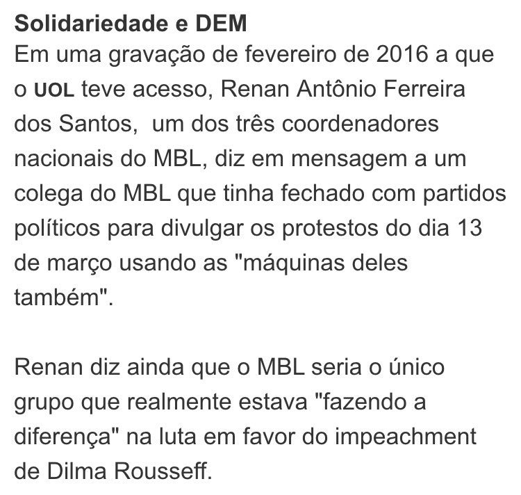 MBL gostava de diferenciar as manifestações: espontâneas X financiadas pela "máquina partidária" Do: Jornalismo Wando
