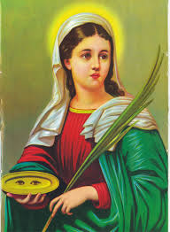 Após as tentativas de punição falharem, foi determinado que lhe fossem arrancados os olhos, pena que era considerada a mais pesada, depois da pena de morte, assim arrancaram os olhos de Luzia e lhe entregaram em uma bandeja, porém no dia seguinte Luzia estava com os olhos perfeitos e mais bonitos, sendo que a partir desse milagre, originou-se a crença de que a Santa Luzia é a protetora dos olhos. Depois das várias tentativas de punir Luzia não funcionarem, as autoridades determinaram que ela fosse decapitada, o que foi feito em 13 de Dezembro do ano 304, fazendo com que Luzia se tornasse um mártir cristão e depois considerada Santa pelos milagres atribuídos a ela.